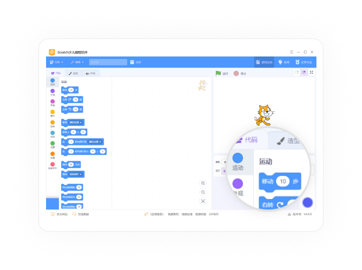 使用图形化的代码块来代替传统编程语言中的文本代码,通过简单的拖拽和拼接代码块的方式,就可以创建程序。